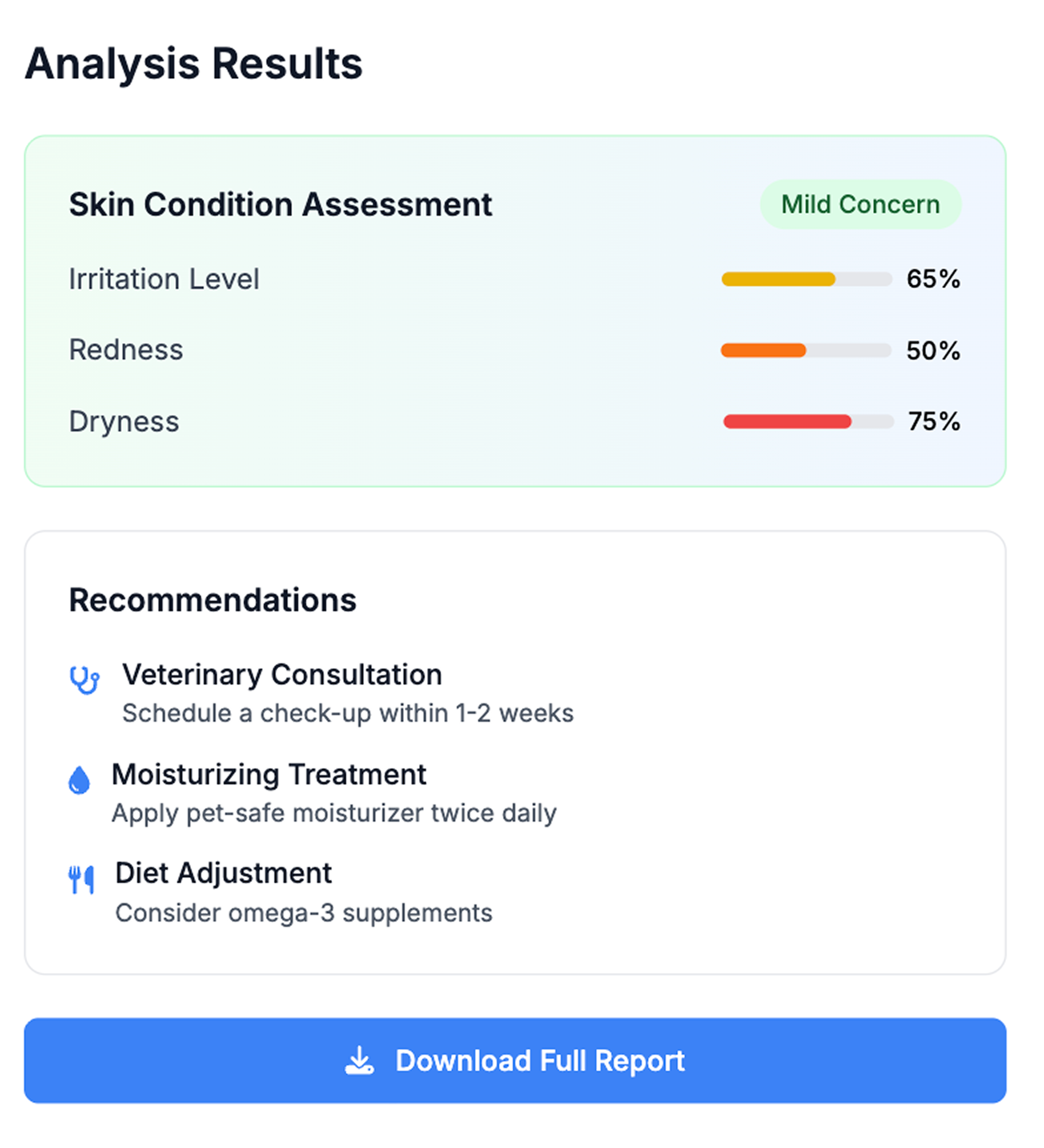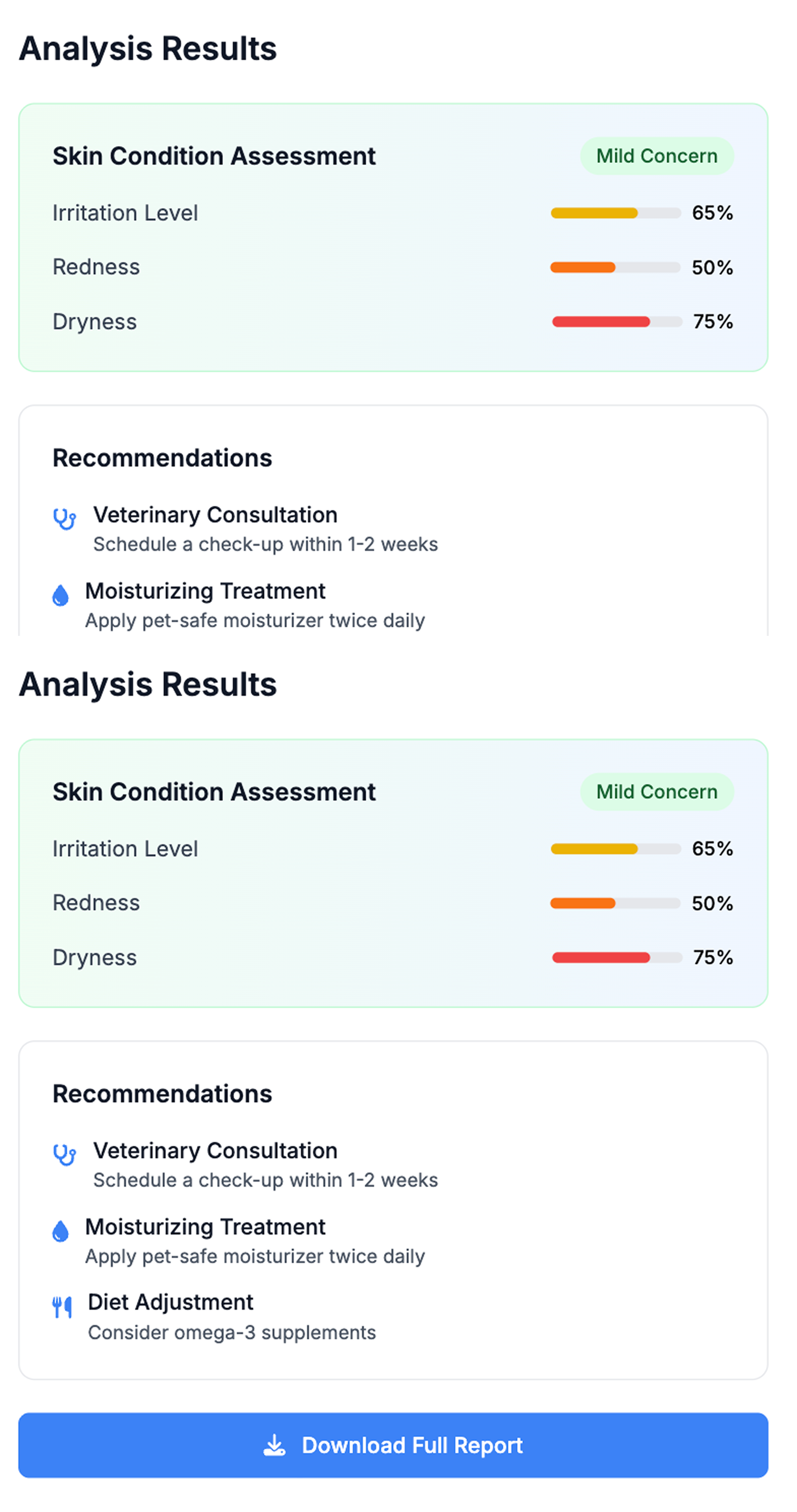 ScanMyPet uses AI trained on real veterinary cases to analyze your pet’s photos with expert precision.